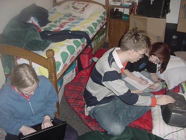 Since nobody was sleeping in there anymore, nor did we intend to allow anyone to that late in the game, Matt's room was used as the base for tearing apart and figuring out the Brady Bunch Math Question.